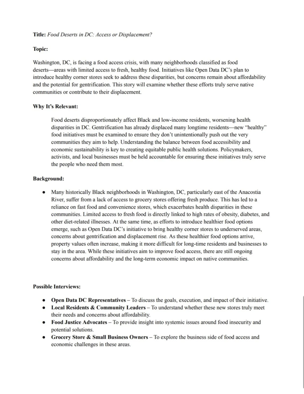 I’m a multimedia storyteller shaped by four years in Howard University’s Emmy-winning newsroom, where I’ve worked every role from floor director and camera operator to audio tech, scriptwriter, and producer. In this space, I learned how to build a story from the ground up—pitching ideas, crafting scripts, developing storyboards, and bringing each piece to life with intention and clarity. My portfolio reflects that journey: a collection of work rooted in curiosity, discipline, and a genuine love for impactful, human-centered storytelling.